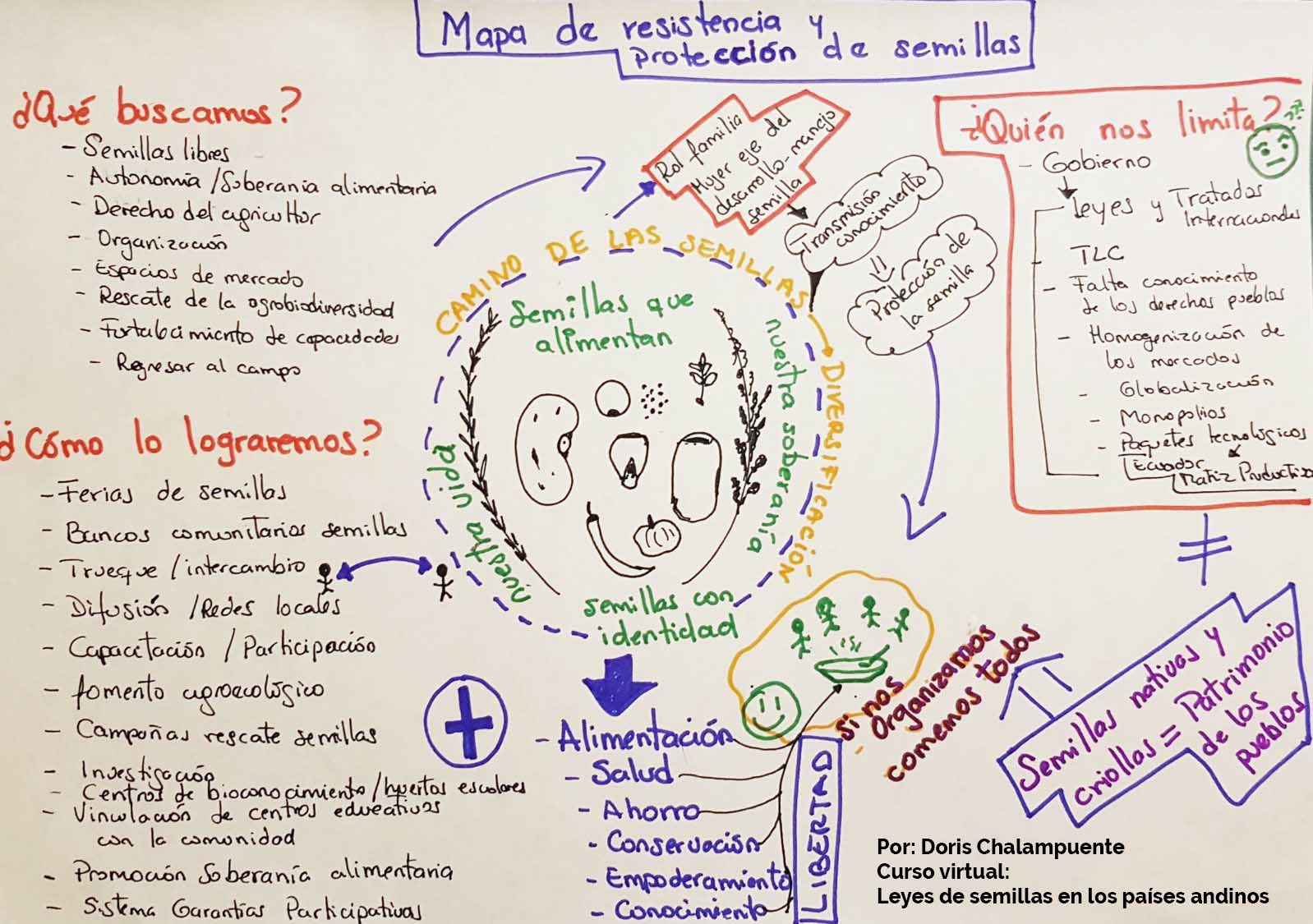 En este artículo el Curso virtual: Leyes de semillas en los países andinos comparte algunos materiales generados por las y los estudiantes del curso. Los mapas con estrategias para frenar el acaparamiento de semillas en la región han sido generados en la unidad 4 y los podcasts, con un análisis sobre las normativas de algunos países han sido trabajados en la unidad 3.