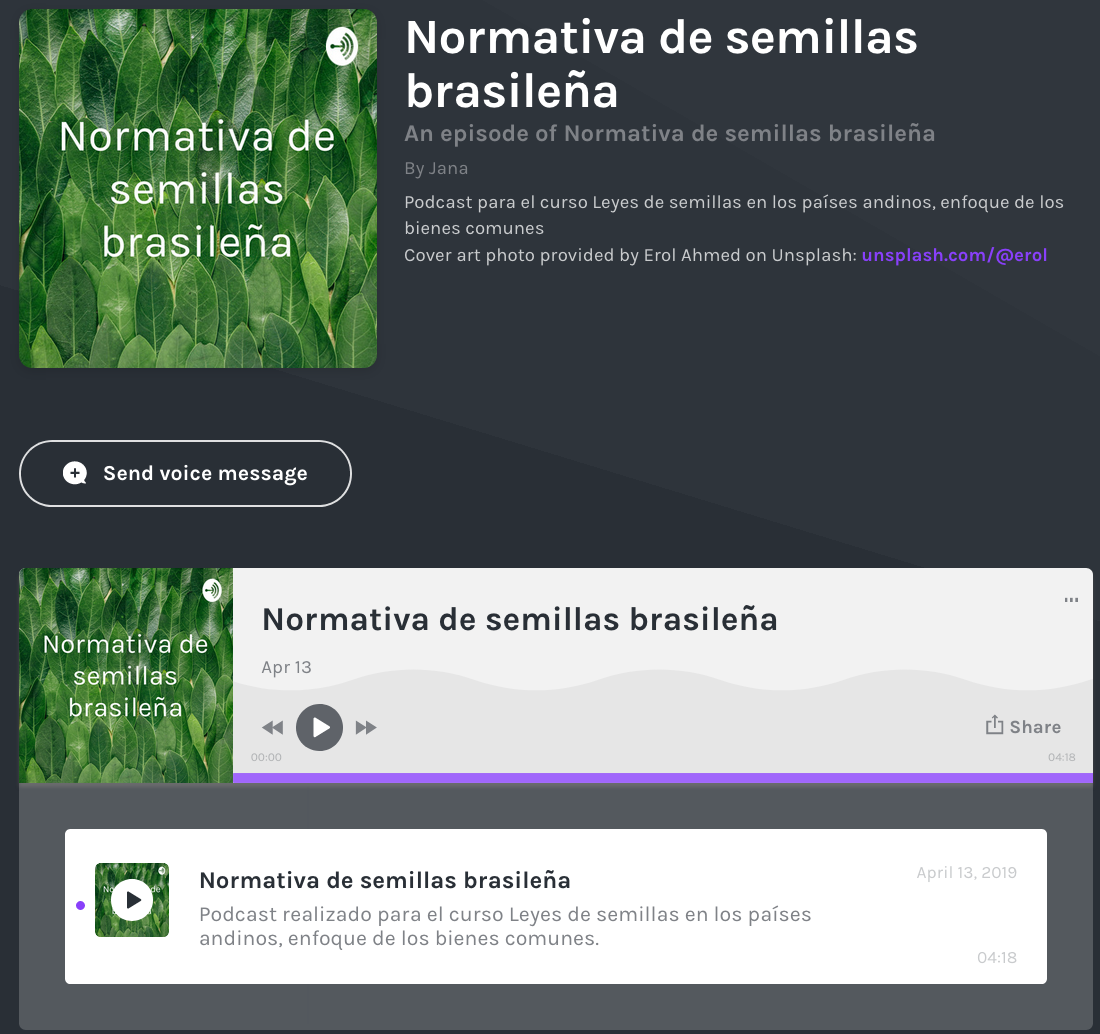 Un podcast no sólo permite difundir una idea permite también organizarla. Un podcast promete capítulos y, en el curso, ha permitido afirmar la resistencia ante el acaparamiento de semillas.