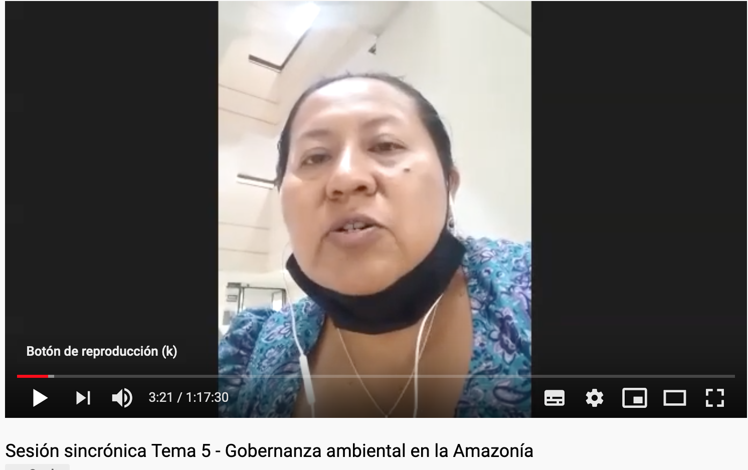 El curso virtual “Gobernanza ambiental en la Amazonía” contó con la contó con la participación de la líder Rosalba Velasco de la ACIN, Asociación de Cabildos Indígenas del Norte del Cauca para el tema relaciona la gobernanza ambiental y los pueblos indígenas en Colombia.